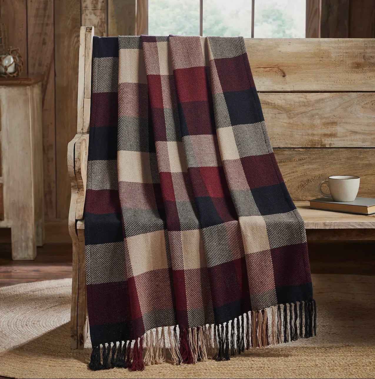 Elevate the charm of your home with the VHC Brands Heritage Farms Primitive Check Woven Throw. Measuring 50x60 inches, this cotton blanket is a perfect addition to your bedroom and living room decor, capturing the essence of primitive and country style. The deep burgundy hue and classic check pattern evoke a timeless, rustic appeal that complements your interior design effortlessly. This throw, belonging to the Heritage Farms Collection, seamlessly combines both form and function. The textured twill weave fabric adds depth and character, creating an inviting atmosphere in your living space. Whether draped over furniture or used as a cozy layer, it not only enhances the aesthetics of your room but also keeps you warm during chilly evenings. With its enduring charm and textural elements, this throw is a delightful addition for those who appreciate the rustic elegance of country and primitive design. The VHC Brands Heritage Farms Primitive Check Woven Throw brings warmth and character to your home. This 50x60-inch cotton blanket beautifully complements your bedroom and living room decor, echoing the timeless appeal of primitive and country styles. The check pattern and deep burgundy color create a rustic, inviting ambiance. The textured twill weave fabric adds depth and character, turning your living space into a cozy haven. Whether used as a decorative piece or for added warmth, this throw captures the enduring charm of country and primitive design. Includes: 1 x Throw Care Instructions: Machine Wash, Tumble Dry Low, Iron Safe Material: 70% Cotton / 30% Cotton Polyester Blend